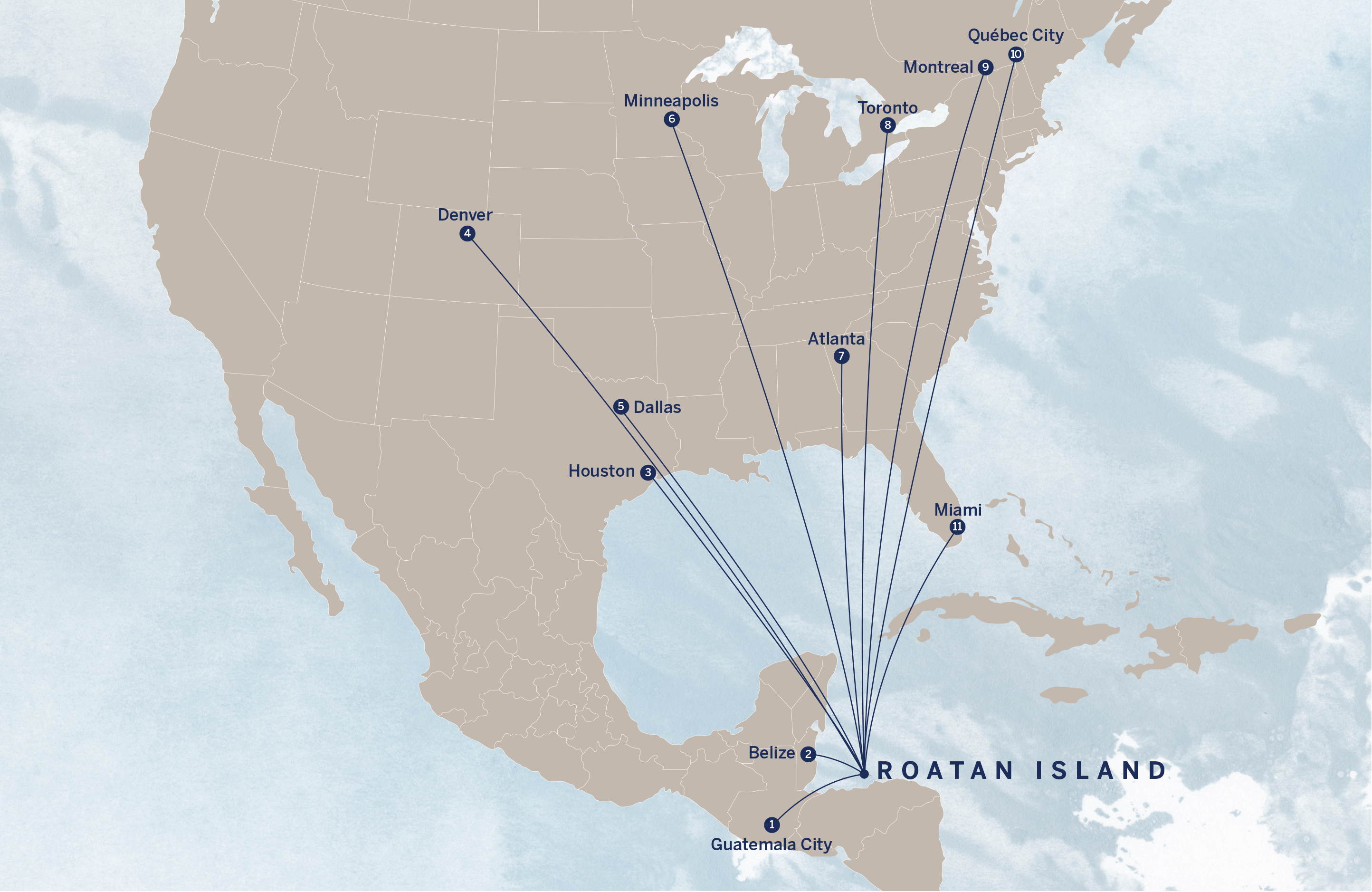 One of the best parts of visiting Roatan is that your next trip is even closer than you can imagine. Several major cities, from Houston to Toronto, have nonstop flight options that make touching down completely seamless from gate to gate. Reduce the time you spend worrying about transfers and connecting flights. Reach your destination with just one takeoff and landing.